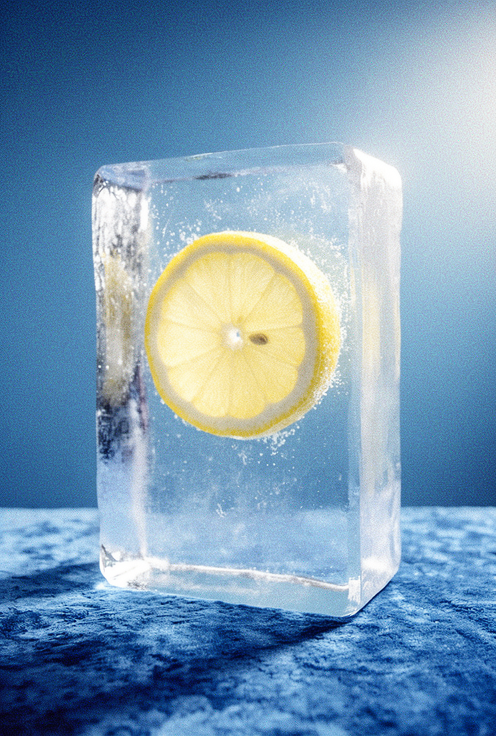 Replace the flower in image 1 with a slice of lemon