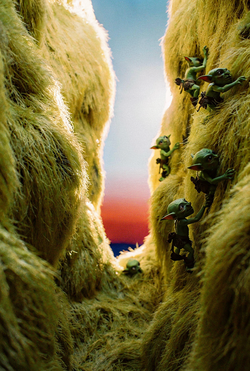 Add small goblins climbing the right wall of the gorge