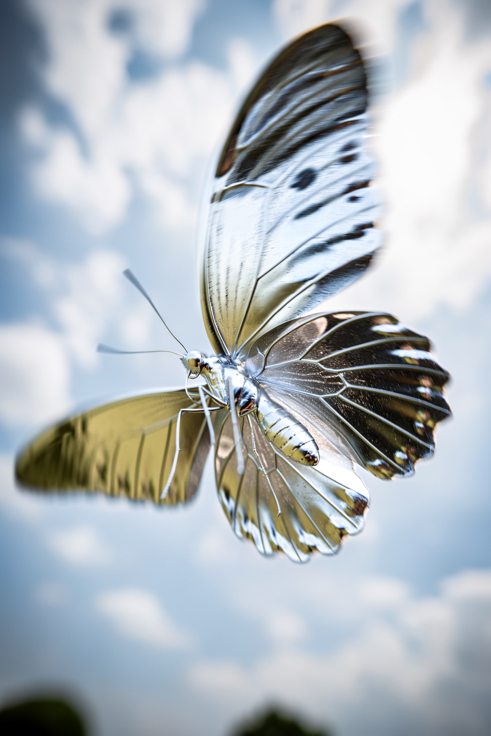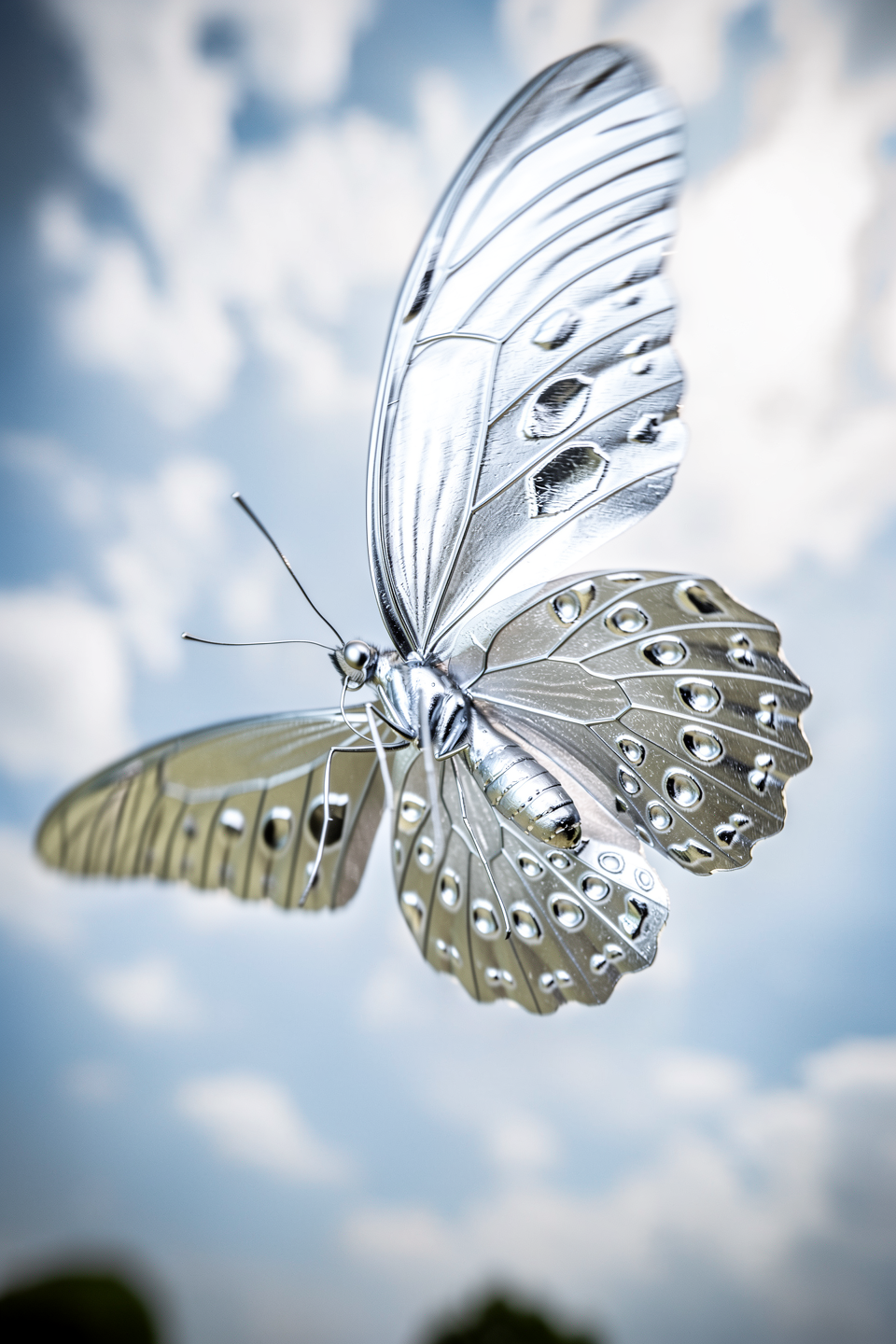 The butterfly is now made of shiny silver