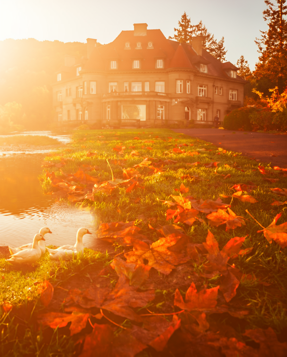 Fix the lighting and make the entire scene appear in warm autumn colors with sunlight