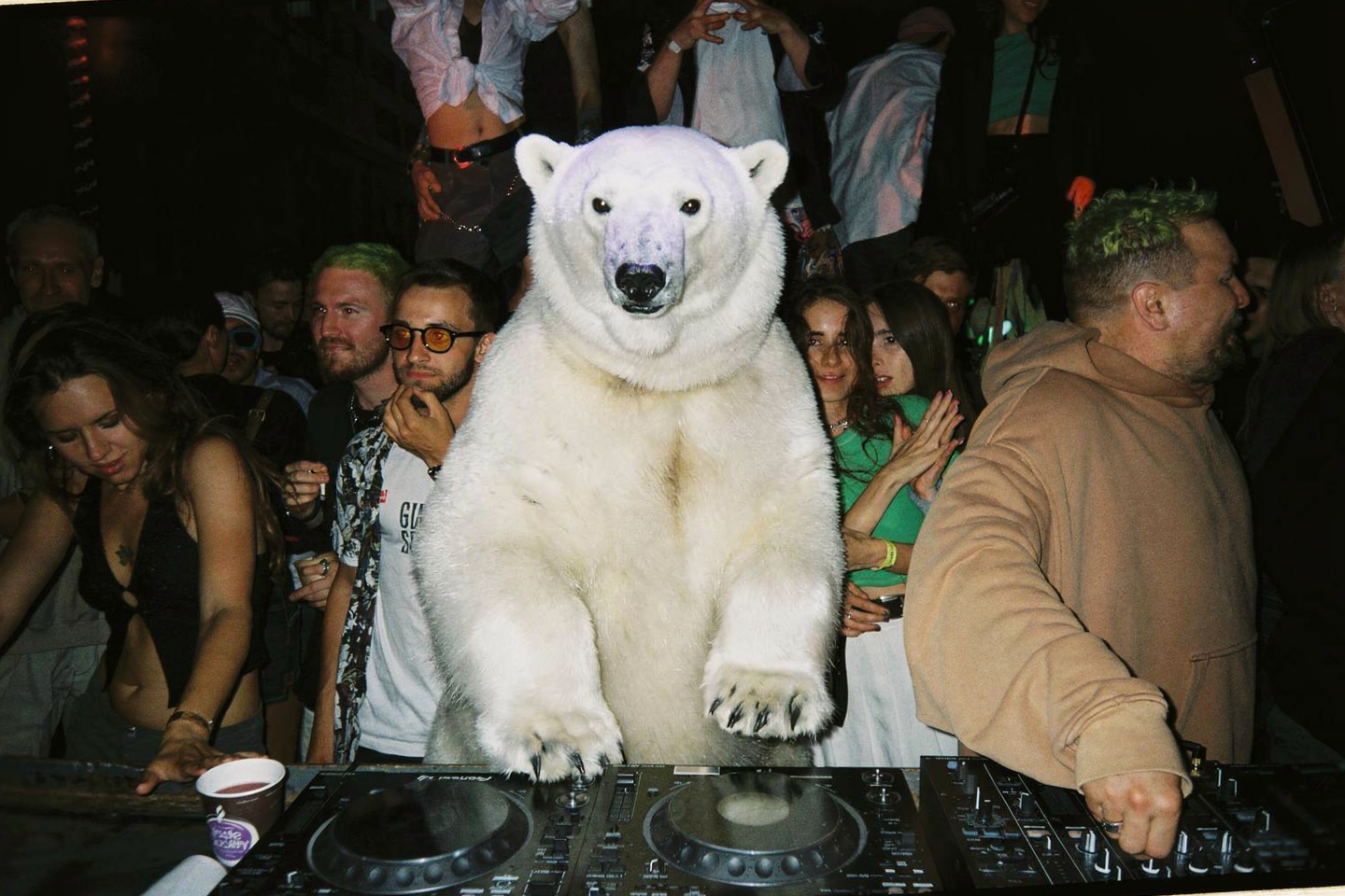 Replace the DJ with a polar bear without headphones
