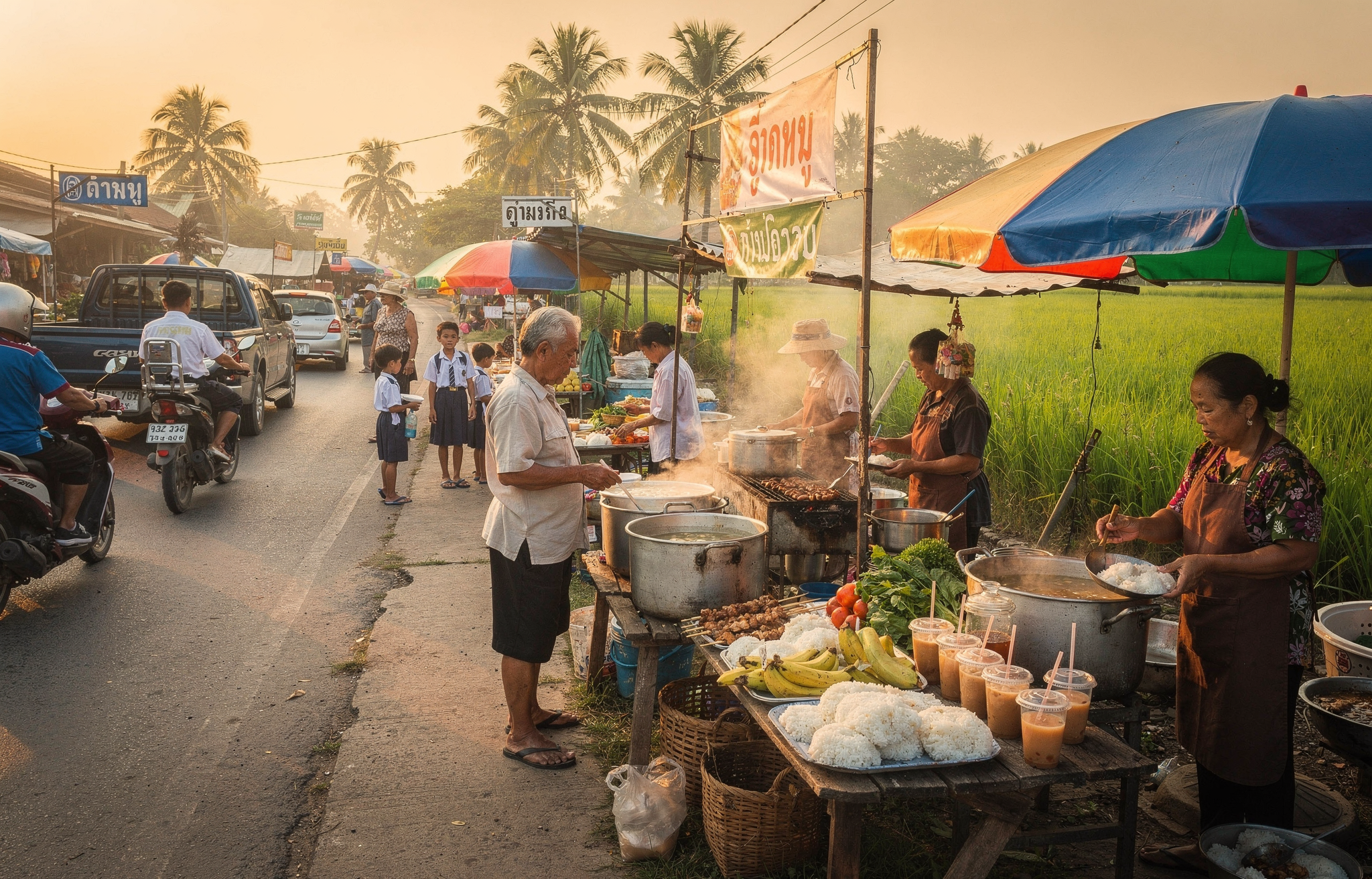 ตลาดอาหารเช้าในชนบทใกล้กรุงเทพฯ