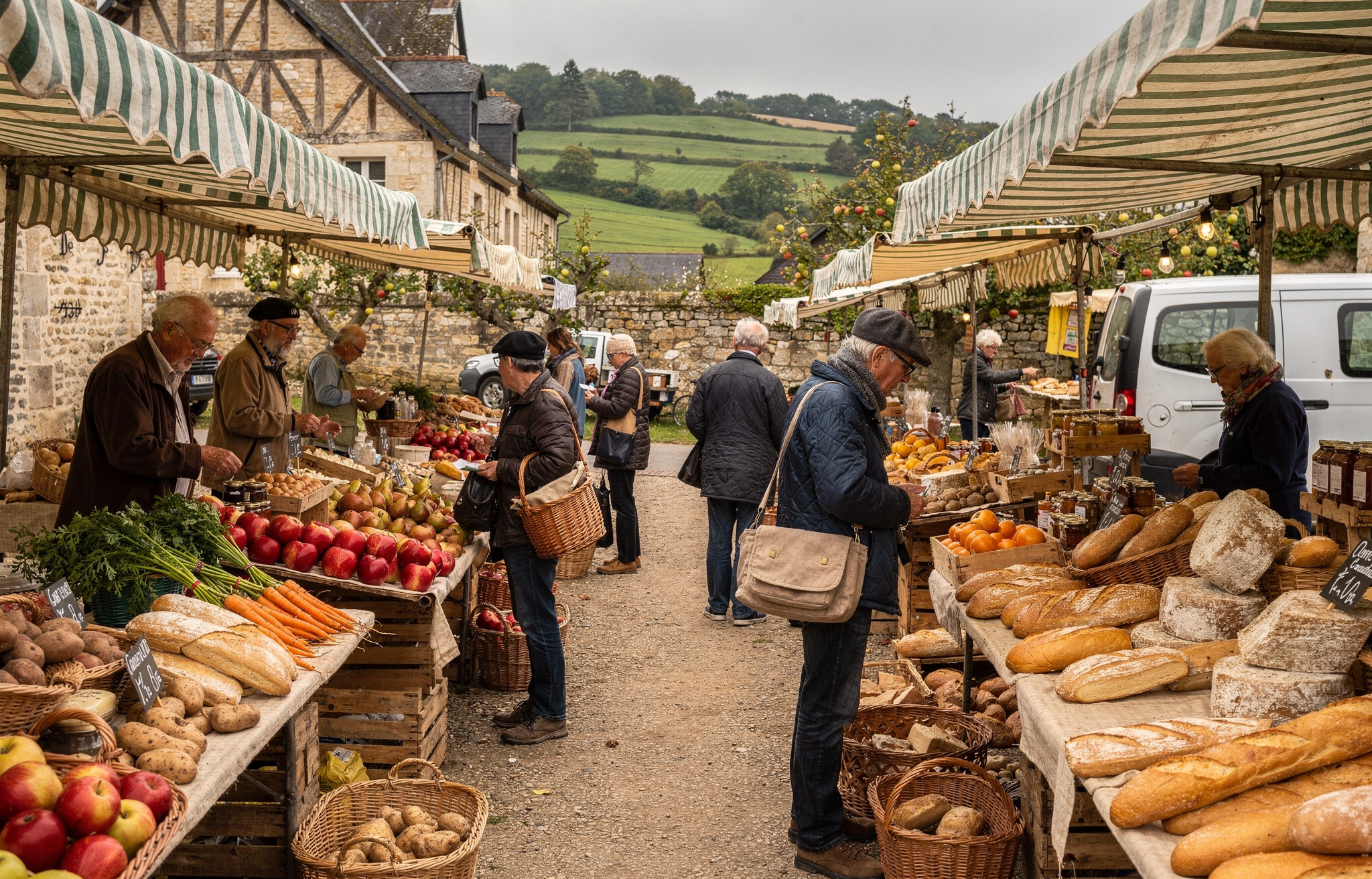 Un marché alimentaire dans la campagne normande