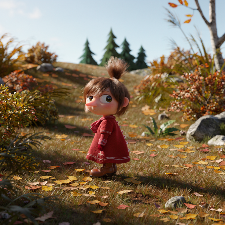 Change the style to full 3D with realistic physical materials such as real hair, fabric, grass, and natural surfaces.