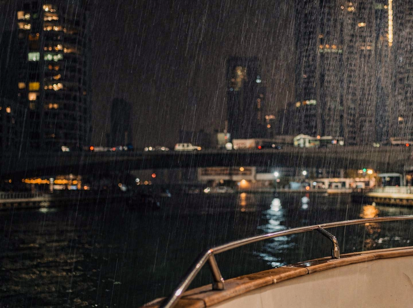 Remove the person, and add falling rain at night.