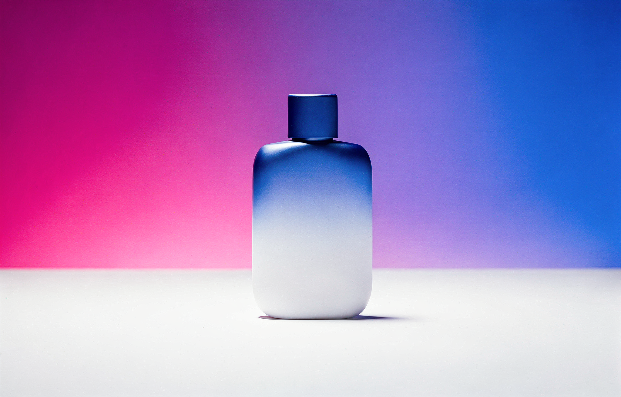 Pink: #FF0080Violet: #7928CACobalt: #0070F3Studio product still, seamless gradient backdrop transitioning left-to-right from hot pink (#FF0080) through violet-purple (#7928CA) into electric cobalt blue (#0070F3), velvet smooth, zero banding. Single hero product centered, matte surface with soft specular catch. Large softbox 45° camera-left, rim light camera-right for edge definition. 85mm lens, f/8, dead-center eye-level.